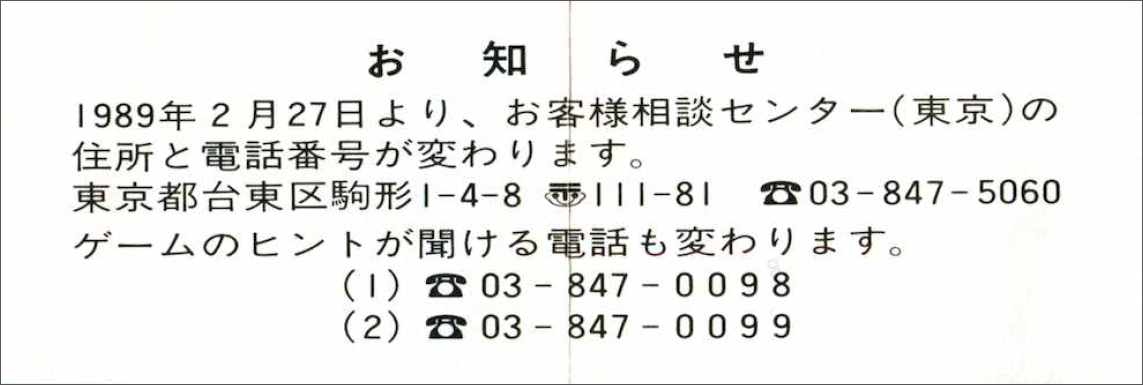 発売日:1987.11.20 / 書換開始日:1988.1.19