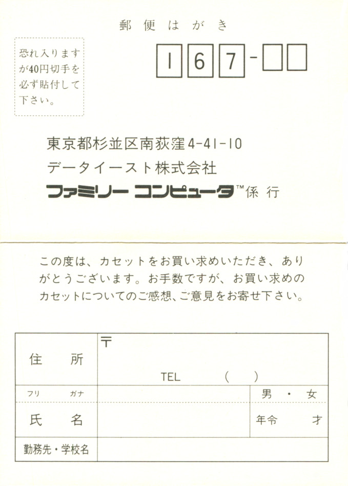 発売日:1986.11.19 / 書換開始日:1987.1.10