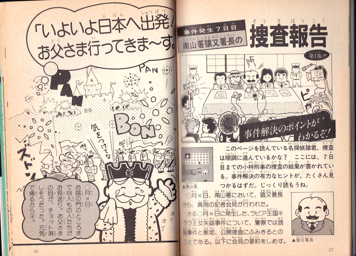 説明書の中身。富田靖子さんへのインタビューや毛利名人による攻略記事など。表紙だけでなく中身も雑誌っぽい作り。