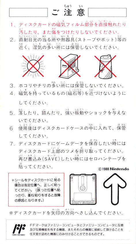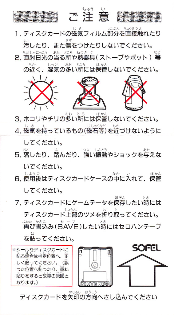 ディスクシステムのパッケージソフトでは最大サイズ。LP盤サイズの巨大なパッケージで発売された。
