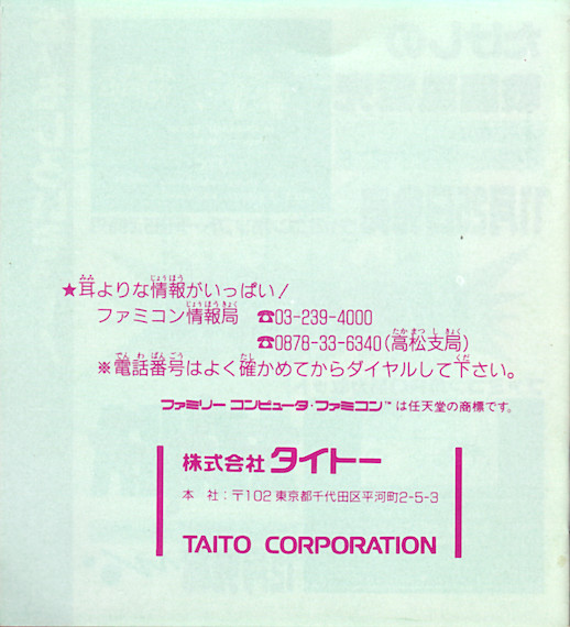 © Nintendo・ KONAMI・ フジテレビ/Nintendo・ Nintendo/NAGATANIEN・ 1990 JV "DIALOG" Author A.Pazhitonov/Nintendo・ スクウェア・ ハミングバード・ マイクロキャビン/スクウェア・ シンキングラビット/スクウェア・ シンキングラビット/アスキー・ キャリーラボ・ SOFT PRO・ ソフトプロ・ バップ/アスキー・ KEMCO・ 1989 The Walt Disney Company and Amblin Entertainment,Inc./KOTOBUKI SYSTEM CO.,LTD.・ 円谷プロ/BANDAI・ 石森プロ/毎日放送/東映/BANDAI・ 石森プロ/フジテレビ/東映/BANDAI・ バンダイ/石森プロ/フジテレビ/東映・ 創通エージェンシー/サンライズ/BANDAI・ CAPCOM・ TAITO CORP.・ TAITO CORP./Sony Corporation/KLON・ ボーステック・ BOTHTEC/XTALSOFT・ HEADGEAR/EMOTION/東北新社/小学館・ ゆでたまご/集英社/NTV/東映動画/BANDAI・ PONY CANYON・ ポニーキャニオン・ ジャニーズ事務所/ポニーキャニオン・ 子猫物語製作委員会/PONY INC.・ 高千穂&A.A/日本サンライズ/NTV/BANDAI・ 藤子/小学館/テレビ朝日/BANDAI・ SONY CREATIVE PRODUCTS INC./BANDAI・ TAKARA CO.,LTD.・ JALECO LTD.・ JALECO LTD. Licensed by RARE Limited・ DATA EAST CORP.・ MUSICAL PLAN LTD./DATA EAST CORP.・ SYSTEM SACOM/USE CO. LTD・ 1986 Gremmlin Graphics./JALECO LTD.・ IREM CORP./Licensed from OX・ IREM CORP./Licensed from CASIO・ IREM CORP./Licensed from Broderbund・ IREM CORP./Licensed from SADATO TANEDA Directed by TAMTEX・ PACK-IN-VIDEO CO.,LTD・ ACTIVISION/ポニーキャニオン・ ACTIVISION/スクウェア・ Activision/GAKKEN・ ソフエル・ FIREBIRD SOFTWARE 1987. PROGRAMMED FOR NINTENDO DISK BY JALECO. EXPORT OUTSIDE JAPAN PROHIBITED.・ HAL研究所・ HAL Laboratory・ SUNSOFT・ SUNSOFT/SYSTEM SACOM・ SUNSOFT/SEKAI BUNKA-SHA・ SUNSOFT/世界文化社/なんきん・ SUNSOFT/ASK KODANSHA・ 陳出達朗/結城恭介/徳間書店/東映動画・ SEDIC/ASCII CORP.・ MOVIC/SONY Video Software International Corp./アートミック/HAL LAB.・ イーストキューブ・ EPYX,INC./PONY CANYON・ アスキー/シャノアール・ ツクダオリジナル/河田・ 東芝EMI・ 東京書籍・ SCOPION SOFT・ 小林まこと/キティエンタープライズ/講談社/SCOPION SOFT・ NAMCO LTD.・ 徳間書店・ TOKUMASHOTEN INTERMEDIA INC.・ TOKUMASHOTEN INTERMEDIA INC./CAMPILE CORP.・ TOKUMA SOFT・ 1989,1990 Michael Feinberg and Software Resources International/1990 HIRO・ BPS・ ROYAL・ MAGINEER CO.,LTD.・ TECMO, LTD.・ ATLUS・ ATHENA・ NIPPON BROADCASTING SYSTEM,INC./Nintendo・ MYOJO FOODS CO.,LTD.