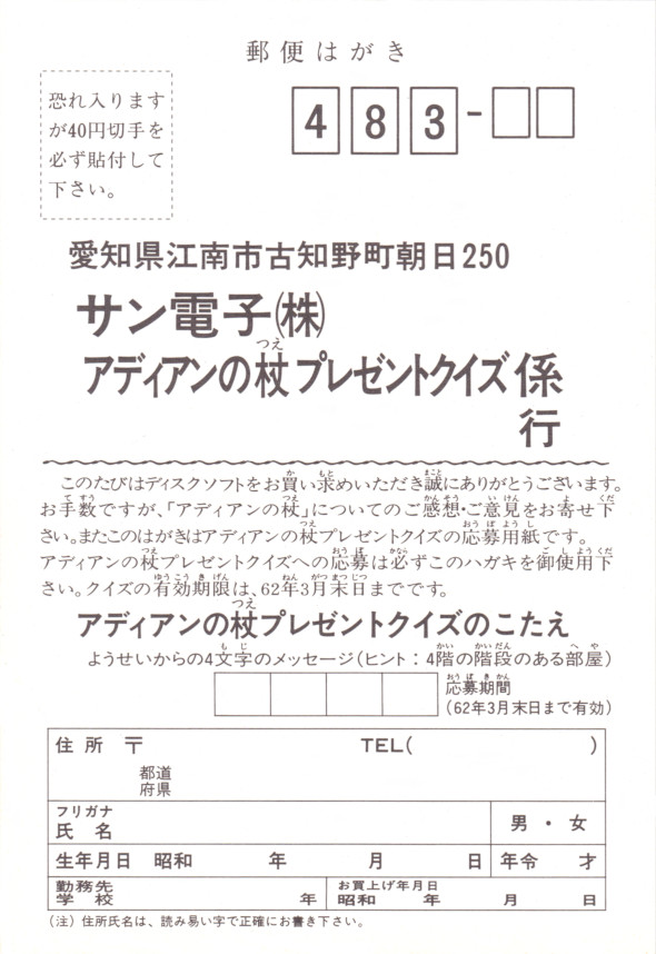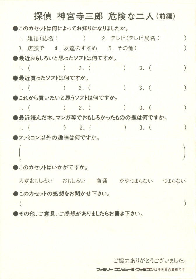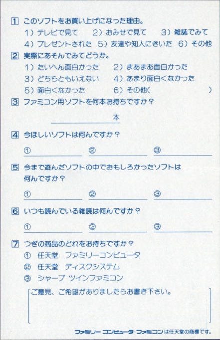 | © Nintendo・ KONAMI・ フジテレビ/Nintendo・ Nintendo/NAGATANIEN・ 1990 JV "DIALOG" Author A.Pazhitonov/Nintendo・ スクウェア・ ハミングバード・ マイクロキャビン/スクウェア・ シンキングラビット/スクウェア・ シンキングラビット/アスキー・ キャリーラボ・ SOFT PRO・ ソフトプロ・ バップ/アスキー・ KEMCO・ 1989 The Walt Disney Company and Amblin Entertainment,Inc./KOTOBUKI SYSTEM CO.,LTD.・ 円谷プロ/BANDAI・ 石森プロ/毎日放送/東映/BANDAI・ 石森プロ/フジテレビ/東映/BANDAI・ バンダイ/石森プロ/フジテレビ/東映・ 創通エージェンシー/サンライズ/BANDAI・ CAPCOM・ TAITO CORP.・ TAITO CORP./Sony Corporation/KLON・ ボーステック・ BOTHTEC/XTALSOFT・ HEADGEAR/EMOTION/東北新社/小学館・ ゆでたまご/集英社/NTV/東映動画/BANDAI・ PONY CANYON・ ポニーキャニオン・ ジャニーズ事務所/ポニーキャニオン・ 子猫物語製作委員会/PONY INC.・ 高千穂&A.A/日本サンライズ/NTV/BANDAI・ 藤子/小学館/テレビ朝日/BANDAI・ SONY CREATIVE PRODUCTS INC./BANDAI・ TAKARA CO.,LTD.・ JALECO LTD.・ JALECO LTD. Licensed by RARE Limited・ DATA EAST CORP.・ MUSICAL PLAN LTD./DATA EAST CORP.・ SYSTEM SACOM/USE CO. LTD・ 1986 Gremmlin Graphics./JALECO LTD.・ IREM CORP./Licensed from OX・ IREM CORP./Licensed from CASIO・ IREM CORP./Licensed from Broderbund・ IREM CORP./Licensed from SADATO TANEDA Directed by TAMTEX・ PACK-IN-VIDEO CO.,LTD・ ACTIVISION/ポニーキャニオン・ ACTIVISION/スクウェア・ Activision/GAKKEN・ ソフエル・ FIREBIRD SOFTWARE 1987. PROGRAMMED FOR NINTENDO DISK BY JALECO. EXPORT OUTSIDE JAPAN PROHIBITED.・ HAL研究所・ HAL Laboratory・ SUNSOFT・ SUNSOFT/SYSTEM SACOM・ SUNSOFT/SEKAI BUNKA-SHA・ SUNSOFT/世界文化社/なんきん・ SUNSOFT/ASK KODANSHA・ 陳出達朗/結城恭介/徳間書店/東映動画・ SEDIC/ASCII CORP.・ MOVIC/SONY Video Software International Corp./アートミック/HAL LAB.・ イーストキューブ・ EPYX,INC./PONY CANYON・ アスキー/シャノアール・ ツクダオリジナル/河田・ 東芝EMI・ 東京書籍・ SCOPION SOFT・ 小林まこと/キティエンタープライズ/講談社/SCOPION SOFT・ NAMCO LTD.・ 徳間書店・ TOKUMASHOTEN INTERMEDIA INC.・ TOKUMASHOTEN INTERMEDIA INC./CAMPILE CORP.・ TOKUMA SOFT・ 1989,1990 Michael Feinberg and Software Resources International/1990 HIRO・ BPS・ ROYAL・ MAGINEER CO.,LTD.・ TECMO, LTD.・ ATLUS・ ATHENA・ NIPPON BROADCASTING SYSTEM,INC./Nintendo・ MYOJO FOODS CO.,LTD. |