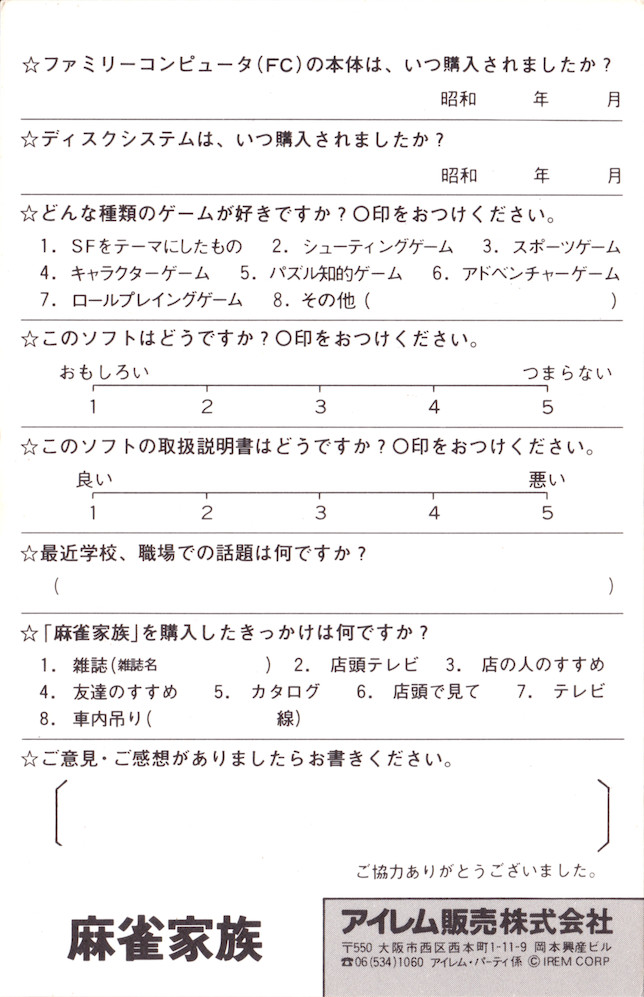 IREM CORP./Licensed from SADATO TANEDA Directed by TAMTEX・