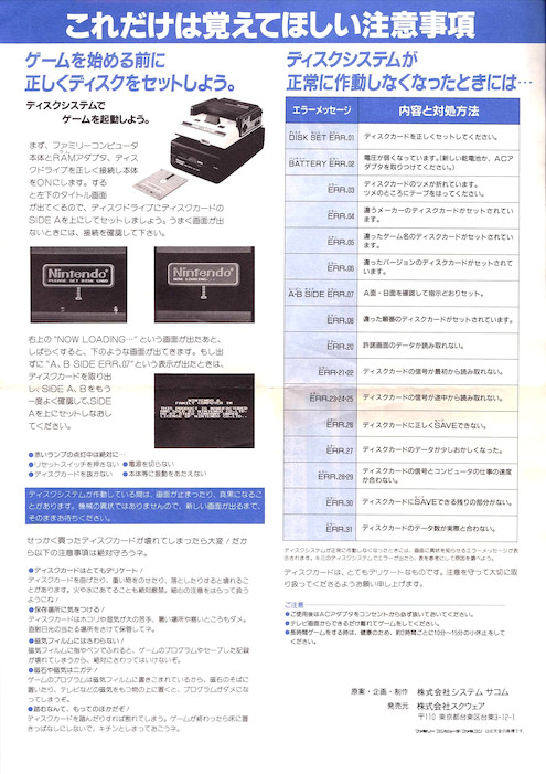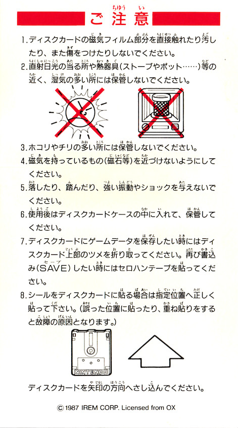 FIREBIRD SOFTWARE 1987. PROGRAMMED FOR NINTENDO DISK BY JALECO. EXPORT OUTSIDE JAPAN PROHIBITED.・