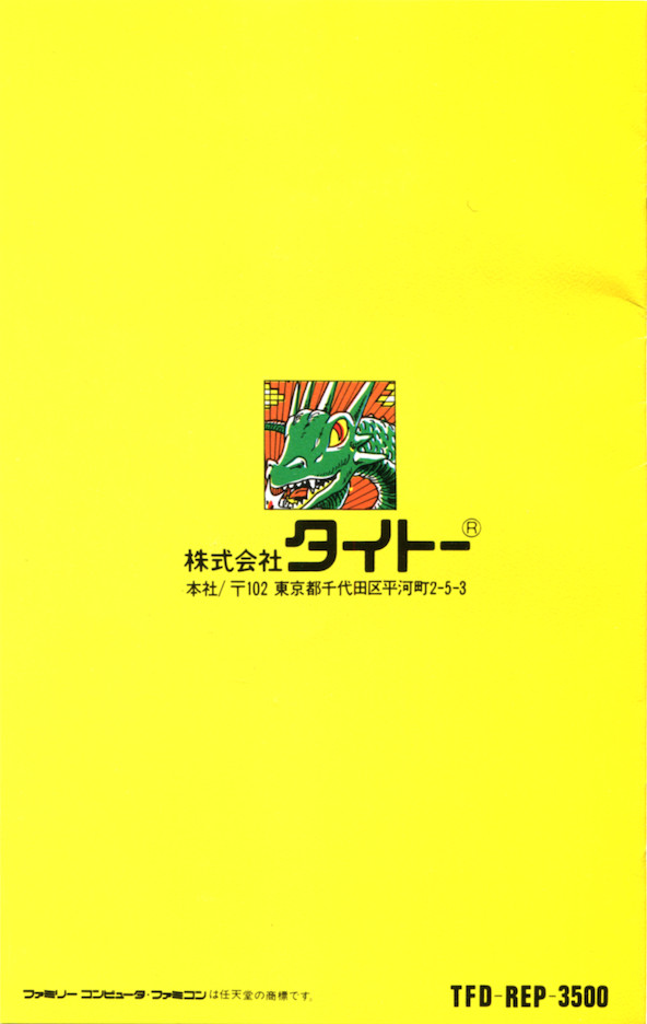 | © Nintendo・ KONAMI・ フジテレビ/Nintendo・ Nintendo/NAGATANIEN・ 1990 JV "DIALOG" Author A.Pazhitonov/Nintendo・ スクウェア・ ハミングバード・ マイクロキャビン/スクウェア・ シンキングラビット/スクウェア・ シンキングラビット/アスキー・ キャリーラボ・ SOFT PRO・ ソフトプロ・ バップ/アスキー・ KEMCO・ 1989 The Walt Disney Company and Amblin Entertainment,Inc./KOTOBUKI SYSTEM CO.,LTD.・ 円谷プロ/BANDAI・ 石森プロ/毎日放送/東映/BANDAI・ 石森プロ/フジテレビ/東映/BANDAI・ バンダイ/石森プロ/フジテレビ/東映・ 創通エージェンシー/サンライズ/BANDAI・ CAPCOM・ TAITO CORP.・ TAITO CORP./Sony Corporation/KLON・ ボーステック・ BOTHTEC/XTALSOFT・ HEADGEAR/EMOTION/東北新社/小学館・ ゆでたまご/集英社/NTV/東映動画/BANDAI・ PONY CANYON・ ポニーキャニオン・ ジャニーズ事務所/ポニーキャニオン・ 子猫物語製作委員会/PONY INC.・ 高千穂&A.A/日本サンライズ/NTV/BANDAI・ 藤子/小学館/テレビ朝日/BANDAI・ SONY CREATIVE PRODUCTS INC./BANDAI・ TAKARA CO.,LTD.・ JALECO LTD.・ JALECO LTD. Licensed by RARE Limited・ DATA EAST CORP.・ MUSICAL PLAN LTD./DATA EAST CORP.・ SYSTEM SACOM/USE CO. LTD・ 1986 Gremmlin Graphics./JALECO LTD.・ IREM CORP./Licensed from OX・ IREM CORP./Licensed from CASIO・ IREM CORP./Licensed from Broderbund・ IREM CORP./Licensed from SADATO TANEDA Directed by TAMTEX・ PACK-IN-VIDEO CO.,LTD・ ACTIVISION/ポニーキャニオン・ ACTIVISION/スクウェア・ Activision/GAKKEN・ ソフエル・ FIREBIRD SOFTWARE 1987. PROGRAMMED FOR NINTENDO DISK BY JALECO. EXPORT OUTSIDE JAPAN PROHIBITED.・ HAL研究所・ HAL Laboratory・ SUNSOFT・ SUNSOFT/SYSTEM SACOM・ SUNSOFT/SEKAI BUNKA-SHA・ SUNSOFT/世界文化社/なんきん・ SUNSOFT/ASK KODANSHA・ 陳出達朗/結城恭介/徳間書店/東映動画・ SEDIC/ASCII CORP.・ MOVIC/SONY Video Software International Corp./アートミック/HAL LAB.・ イーストキューブ・ EPYX,INC./PONY CANYON・ アスキー/シャノアール・ ツクダオリジナル/河田・ 東芝EMI・ 東京書籍・ SCOPION SOFT・ 小林まこと/キティエンタープライズ/講談社/SCOPION SOFT・ NAMCO LTD.・ 徳間書店・ TOKUMASHOTEN INTERMEDIA INC.・ TOKUMASHOTEN INTERMEDIA INC./CAMPILE CORP.・ TOKUMA SOFT・ 1989,1990 Michael Feinberg and Software Resources International/1990 HIRO・ BPS・ ROYAL・ MAGINEER CO.,LTD.・ TECMO, LTD.・ ATLUS・ ATHENA・ NIPPON BROADCASTING SYSTEM,INC./Nintendo・ MYOJO FOODS CO.,LTD. |
