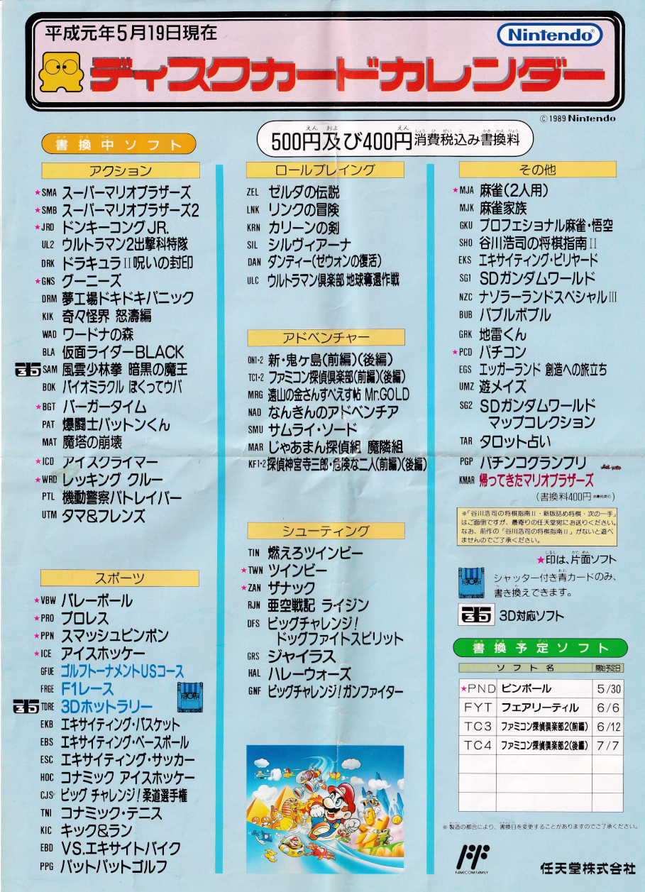 ◆ディスクカードカレンダー 〜 ディスクシステムソフトの店頭書き替えリスト &書き換え一覧表