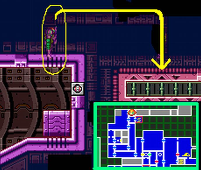 ・Aは、スクリューアタックで部屋のブロックを壊し右上のブルーゲートへ進む方法。
